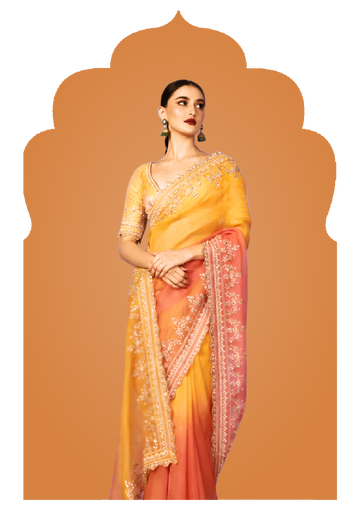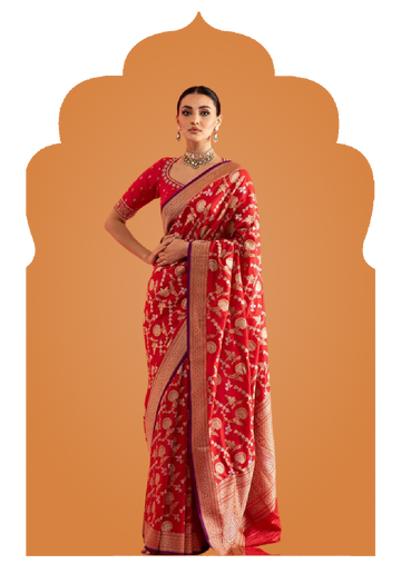 Drape yourself in the timeless elegance of authentic Banarasi silk. Woven with traditional craftsmanship, this...