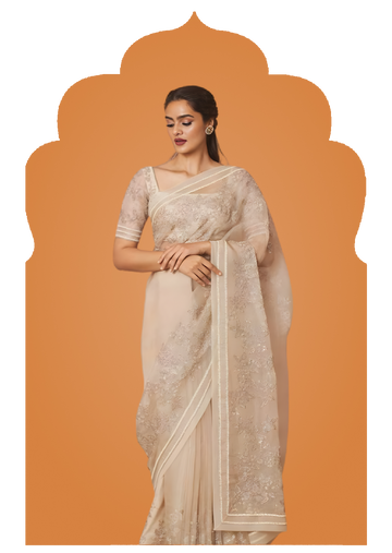BHANDEJ GEORGETTE WITH PIPING BORDER WITH 6.3 CUT Elegant BHANDEJ Marshmallow Georgette fabric brings timeless...