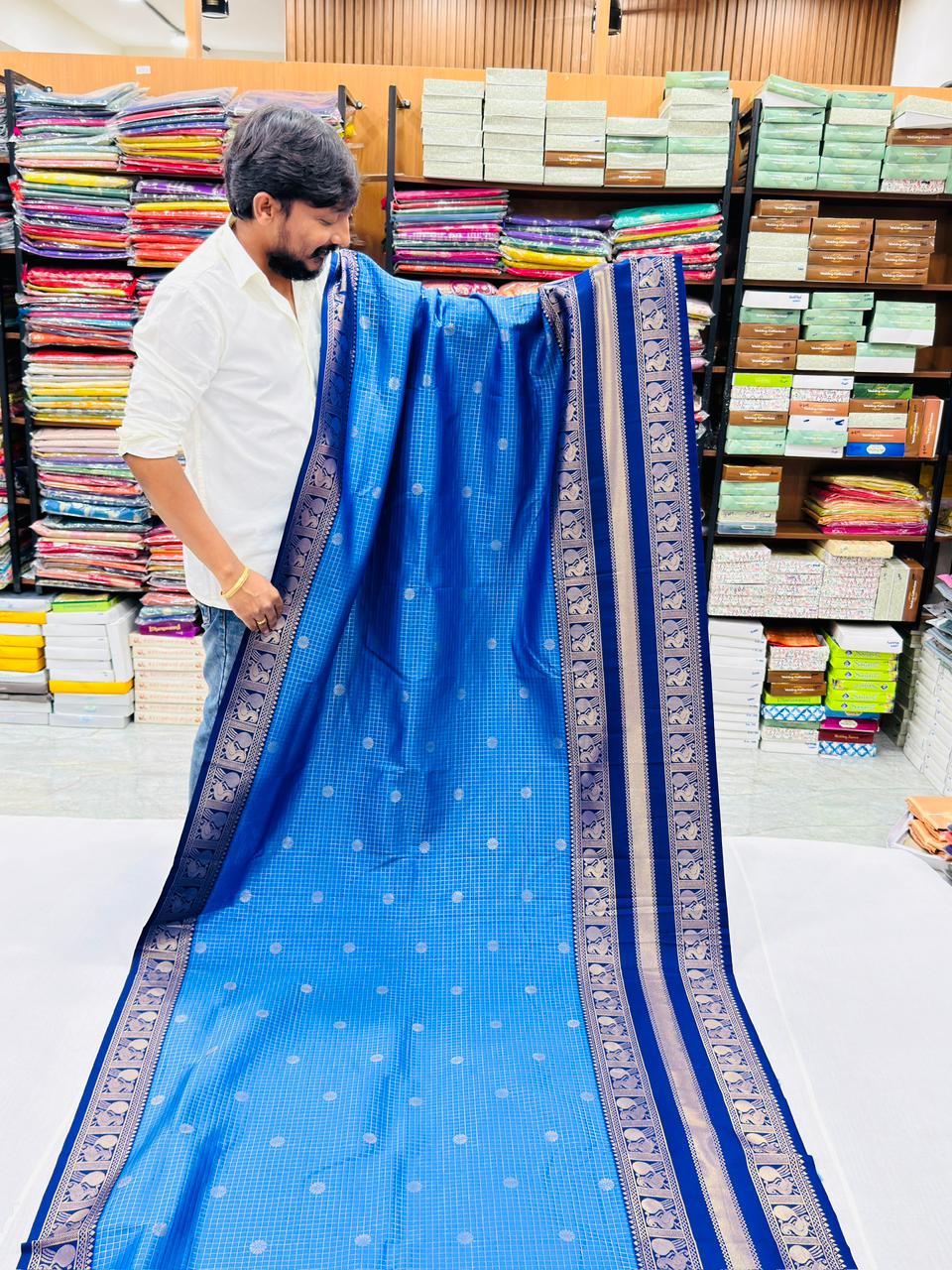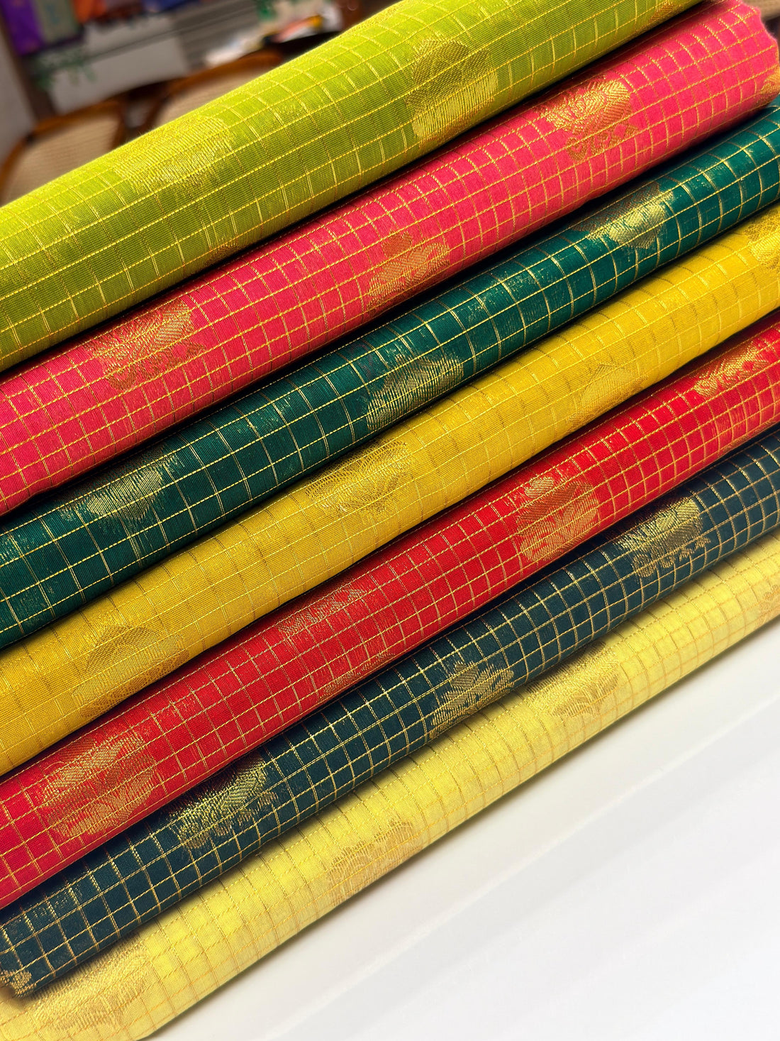 Koruvai Kanjeevaram Semi sarees blend traditional South Indian weaving with contemporary elegance. Crafted with premium...