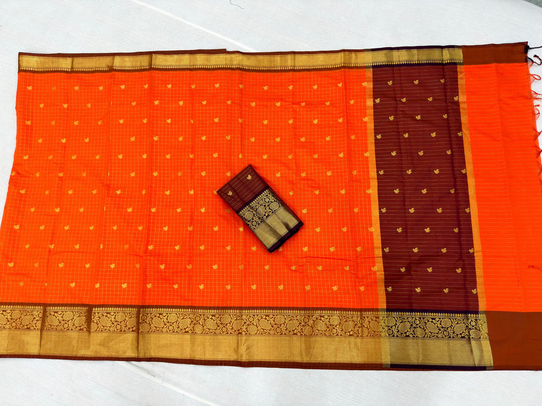 Timeless elegance meets traditional craftsmanship in this Vintage Checks Banarasi saree. Woven with intricate checked...