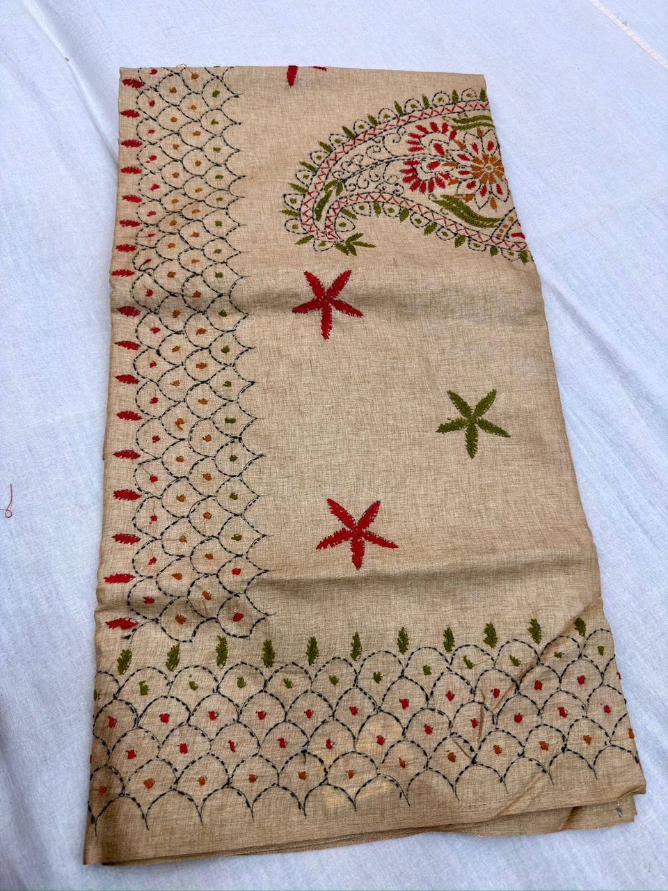 MANIPURI KNOT WORK TUSSER CREAM